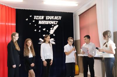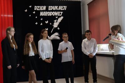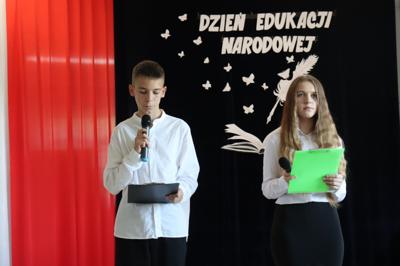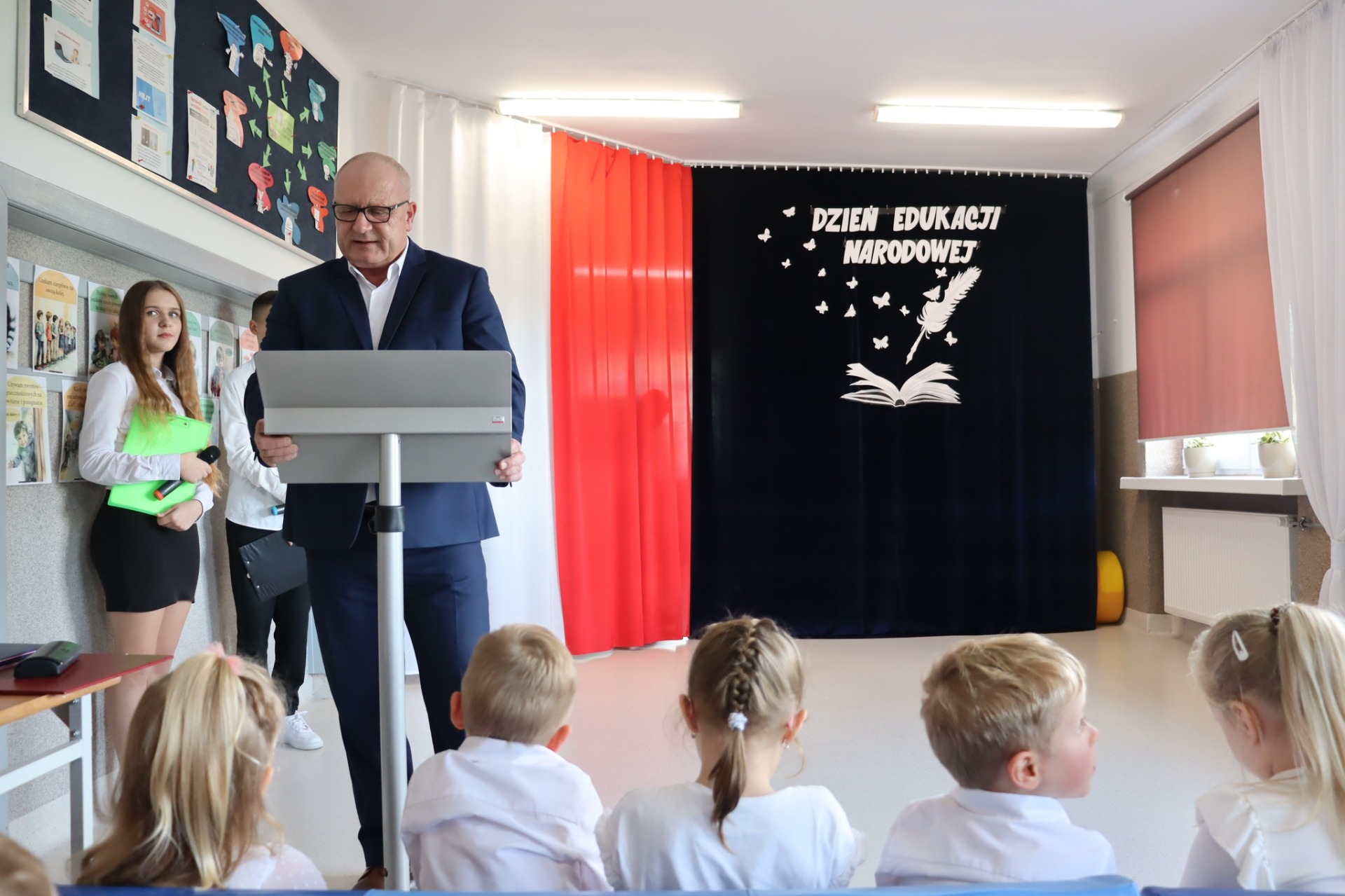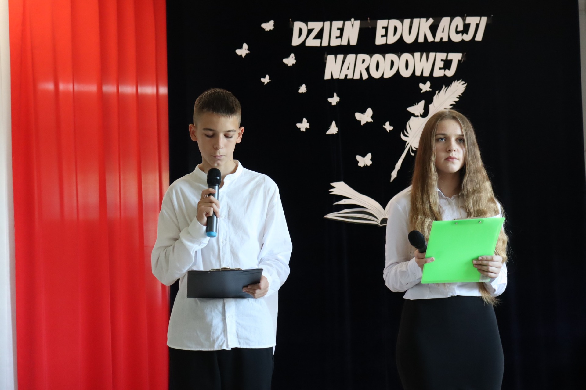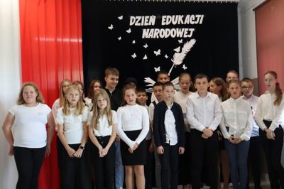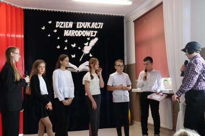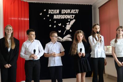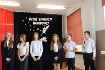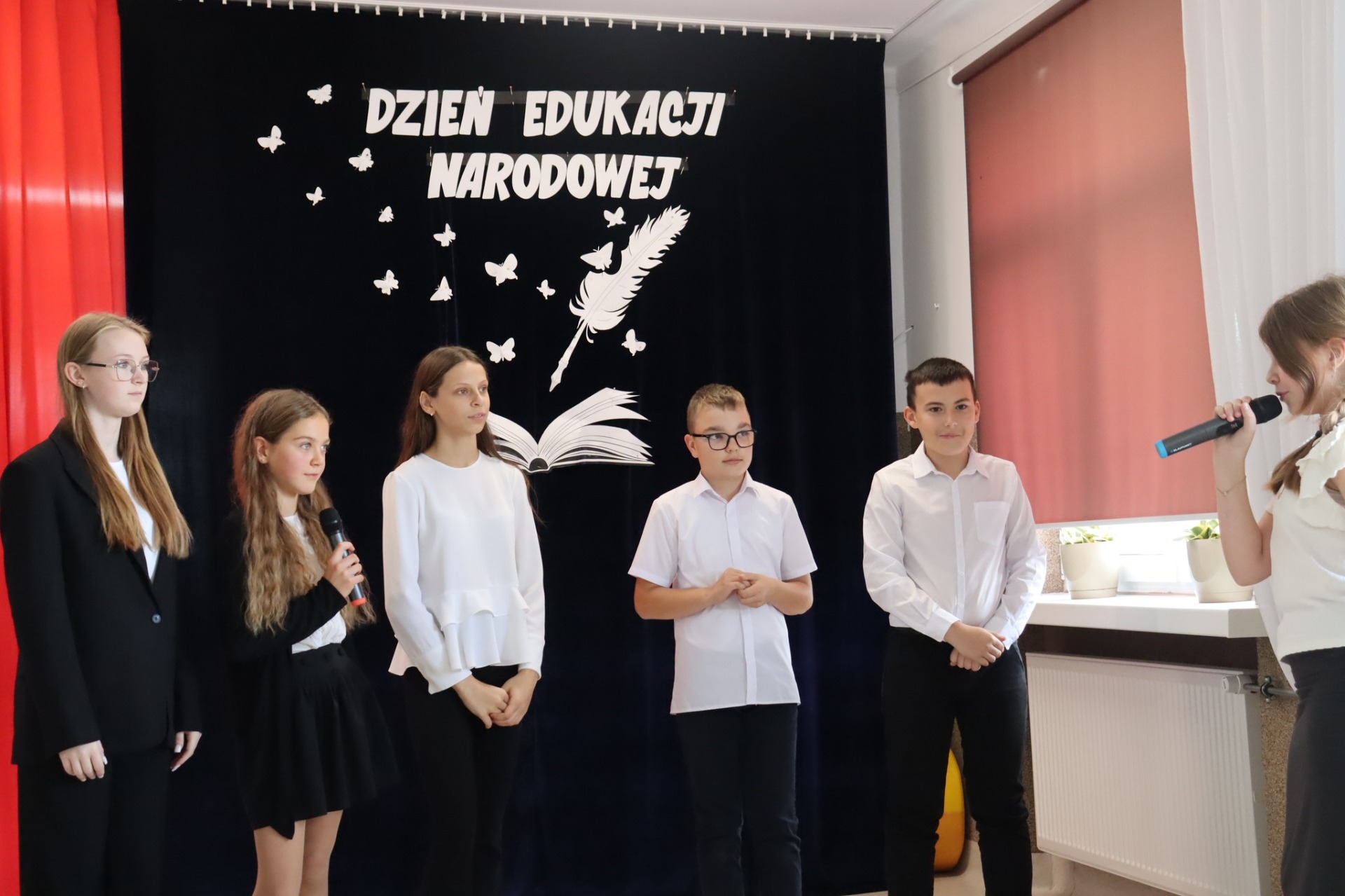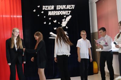 Dnia 13.10.2025 roku w naszej szkole odbyła się uroczystość z okazji Dnia Edukacji Narodowej. Samorząd Uczniowski przygotował akademię, która była doskonałą okazją do wyrażenia wdzięczności nauczycielom za codzienną pracę, troskę i poświęcenie. Podczas uroczystości głos zabrał Dyrektor Szkoły, który podziękował pracownikom za pasję i zaangażowanie. Słowa podziękowania skierowała również w stronę nauczycieli i pracowników Pani Katarzyna Bogucka - przewodnicząca Rady Rodziców.